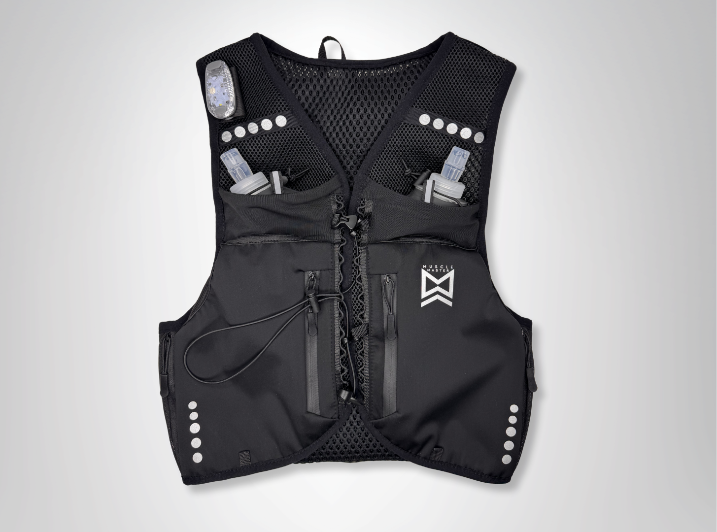 Handige lusjes: Speciaal ontworpen om de Muscle Master led lampjes aan op te hangen tijdens je run en om de drinkflacons mee vast te zettten.